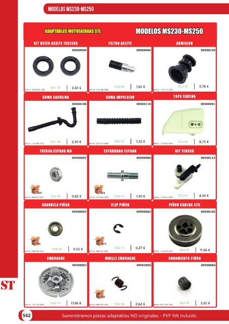562 Suministramos piezas adaptables NO originales - PVP IVA Incluído