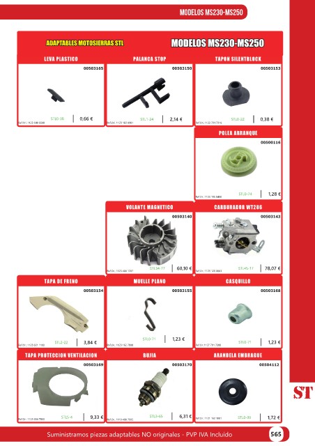 Suministramos piezas adaptables NO originales - PVP IVA Incluído 565
