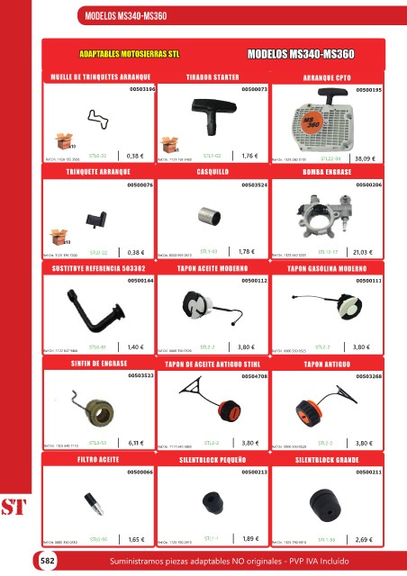 582 Suministramos piezas adaptables NO originales - PVP IVA Incluído