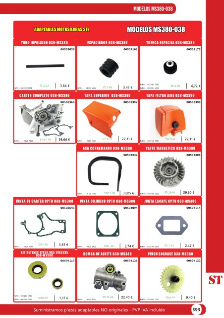 Suministramos piezas adaptables NO originales - PVP IVA Incluído 593