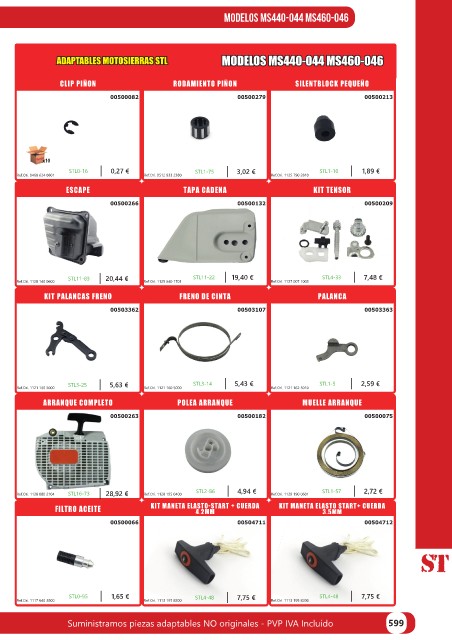 Suministramos piezas adaptables NO originales - PVP IVA Incluído 599