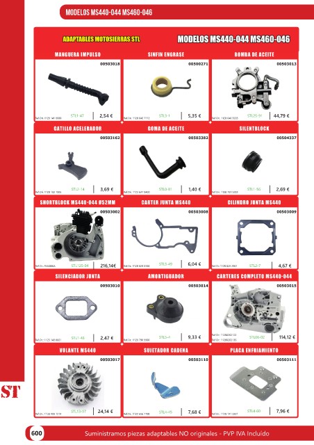 600 Suministramos piezas adaptables NO originales - PVP IVA Incluído