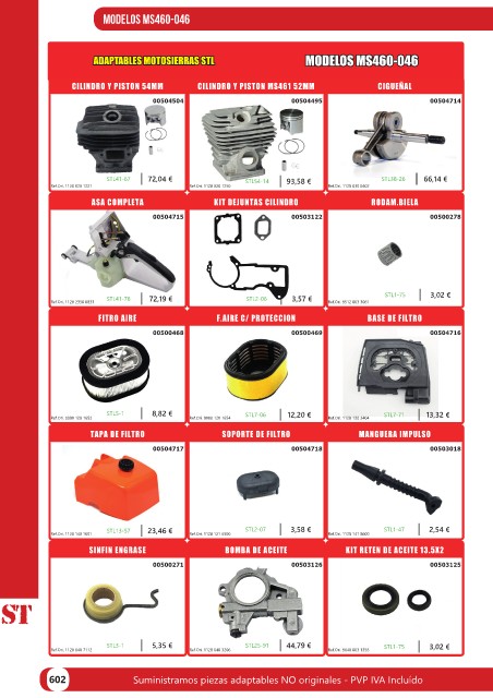 602 Suministramos piezas adaptables NO originales - PVP IVA Incluído