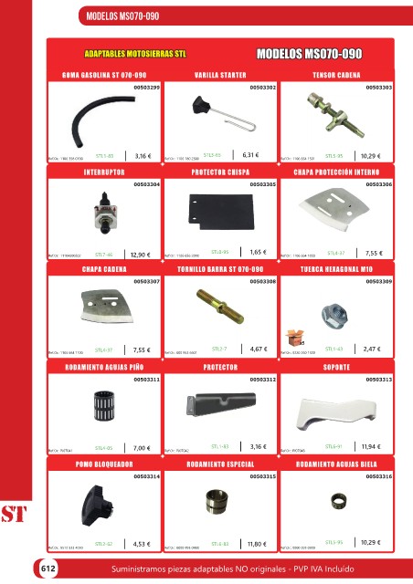 612 Suministramos piezas adaptables NO originales - PVP IVA Incluído