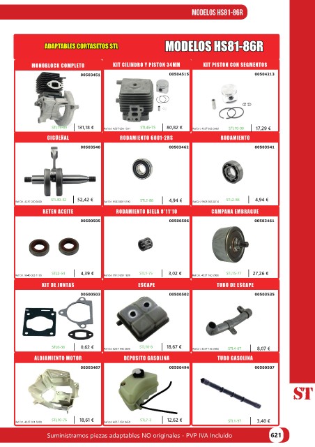 Suministramos piezas adaptables NO originales - PVP IVA Incluído 621