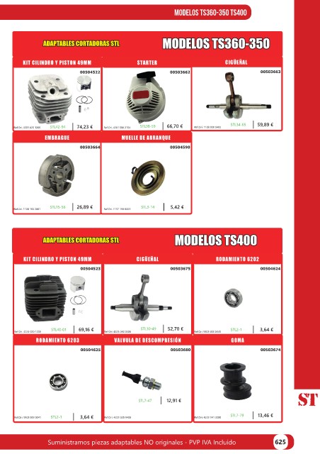 Suministramos piezas adaptables NO originales - PVP IVA Incluído 625
