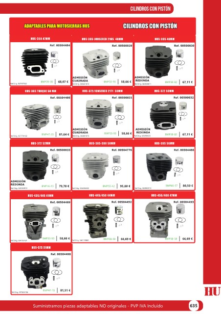 Suministramos piezas adaptables NO originales - PVP IVA Incluído 635