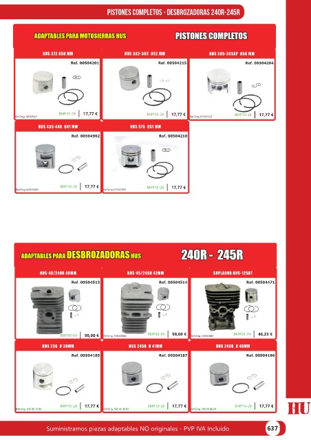 Suministramos piezas adaptables NO originales - PVP IVA Incluído 637