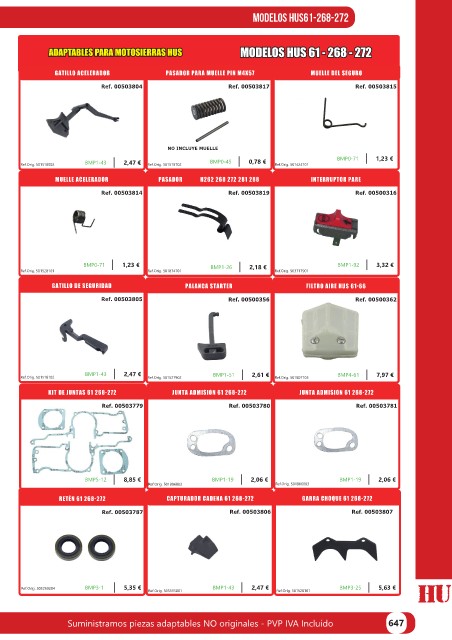Suministramos piezas adaptables NO originales - PVP IVA Incluído 647