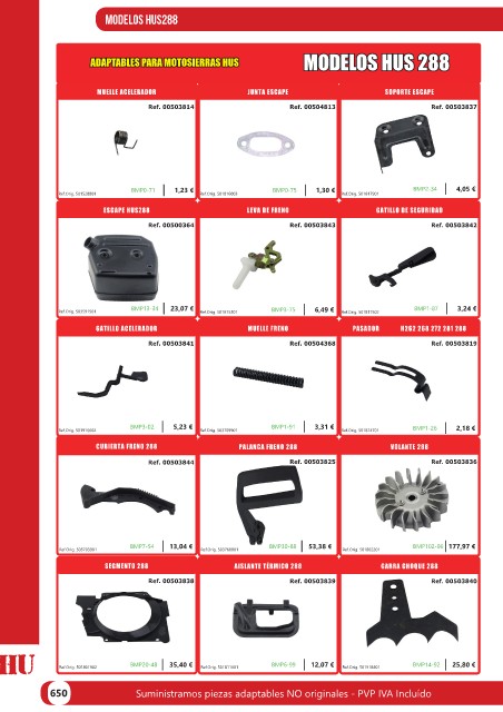 650 Suministramos piezas adaptables NO originales - PVP IVA Incluído