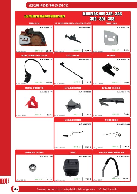 652 Suministramos piezas adaptables NO originales - PVP IVA Incluído