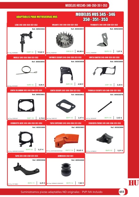 Suministramos piezas adaptables NO originales - PVP IVA Incluído 655