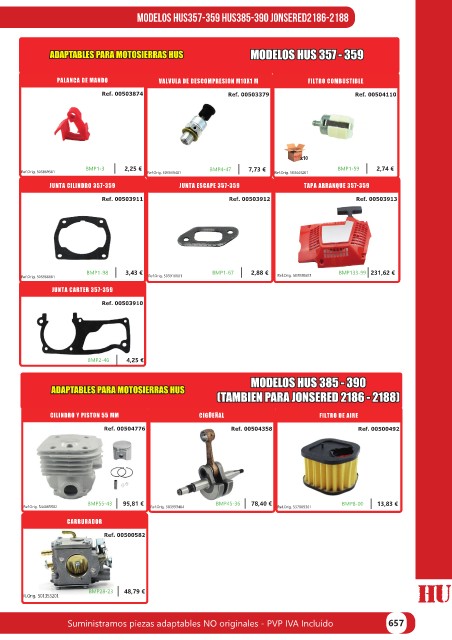 Suministramos piezas adaptables NO originales - PVP IVA Incluído 657