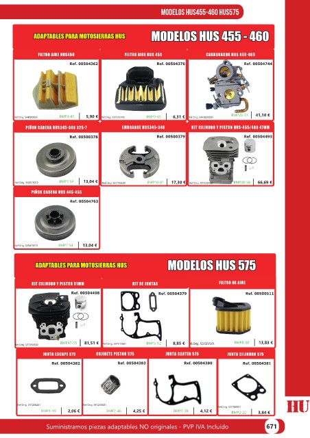 Suministramos piezas adaptables NO originales - PVP IVA Incluído 671