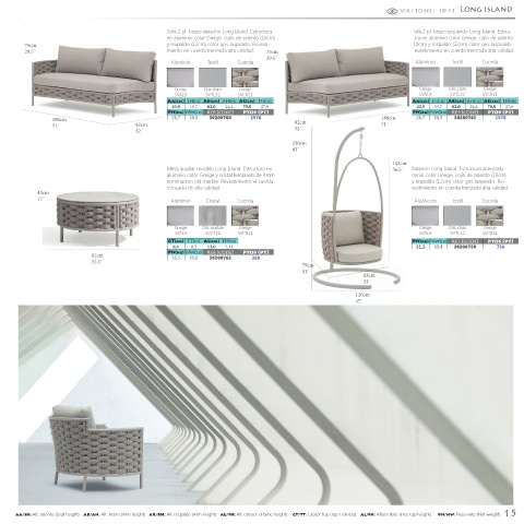 Mesa auxiliar modelo Long Island. Estructura en 56,5¨ Balancín Long Island. Estructura acero/alu-