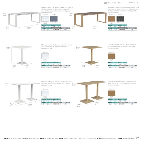 Mesa alta rectangular Isabelle. Estructura de alumi- Mesa alta rectangular Isabelle. Estructura de alu-