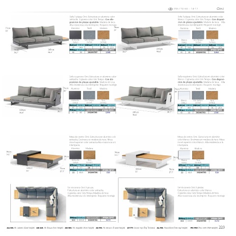 AA/SH: Alt. asiento (Seat height) AB/AH: Alt. Brazo (Arm height) AR/BH: Alt. respaldo (Arm height) AE/FH: Alt. estruct. (Frame height) GT/TT: Grosor top (Top Tickness) AL/FH: Altura libre (Free top height) PN/NW: Peso neto (Net weight) 223