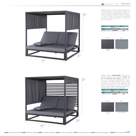AA/SH: Alt. asiento (Seat height): Alt. asiento (Seat height) AB/AH: Alt. Brazo (Arm height) AE/FH: Alt. estruct. (Frame height)Alt. estruct. (Frame height) GT/TT: Grosor top (Top Tickness): Grosor top (Top Tickness) AL/FH: Altura libre (Free top height) Altura libre (Free top height) PN/NW: Peso neto (Net weight)