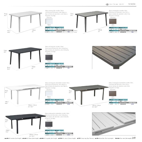 AA/SH: Alt. asiento (Seat height) AB/AH: Alt. Brazo (Arm height) AR/BH: Alt. respaldo (Arm height) AE/FH: Alt. estruct. (Frame height) GT/TT: Grosor top (Top Tickness) AL/FH: Altura libre (Free top height) PN/NW: Peso neto (Net weight) 249