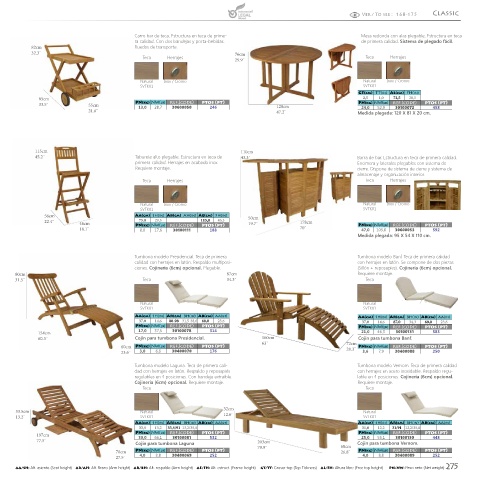 45.2¨                             Taburete alto plegable. Estructura en teca de   43.3¨                       Barra de bar. Estructura en teca de primera calidad.